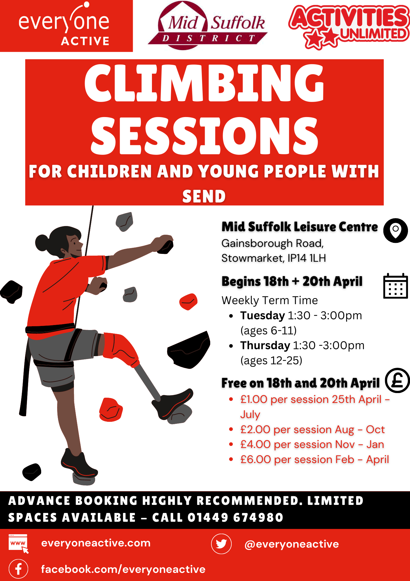 Mid Suffolk Council, along with Activities Unlimited and Everyone Active have joined together to provide climbing wall sessions at Everyone Active in Stowmarket.